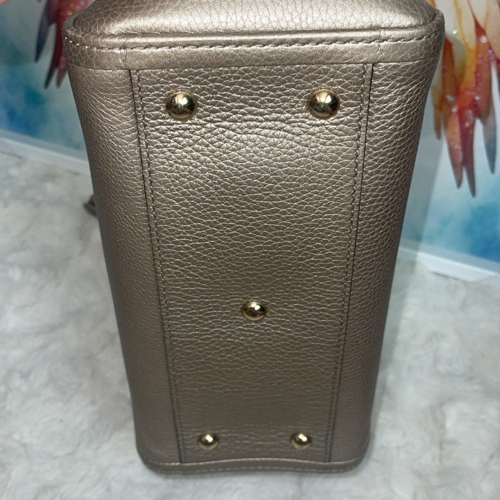 This Gucci is in beautiful, clean pre loved condition, color is a tan bronze, very versatile color. Please join my lives for more info & best show price. (Item #1349)