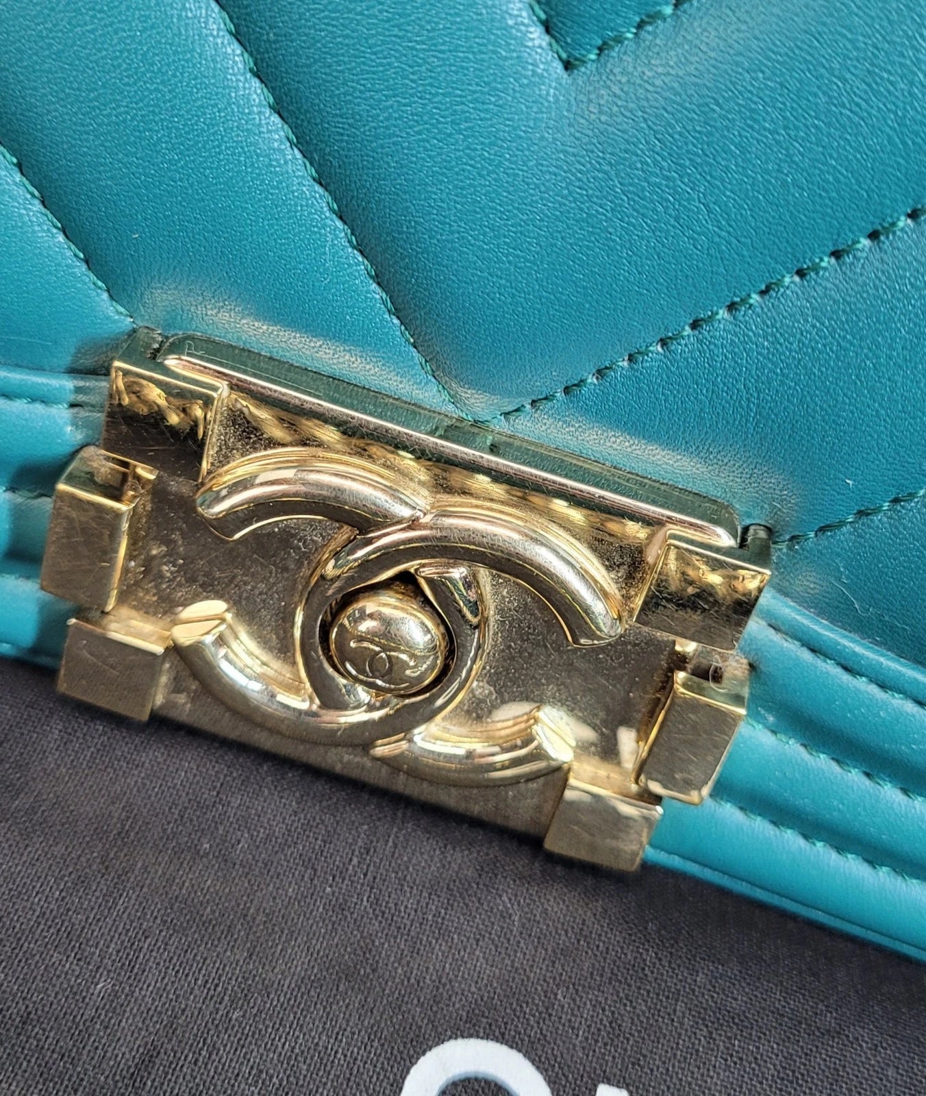 Chanel Lambskin Teal Chevron Leather Boy Bag Series 27
