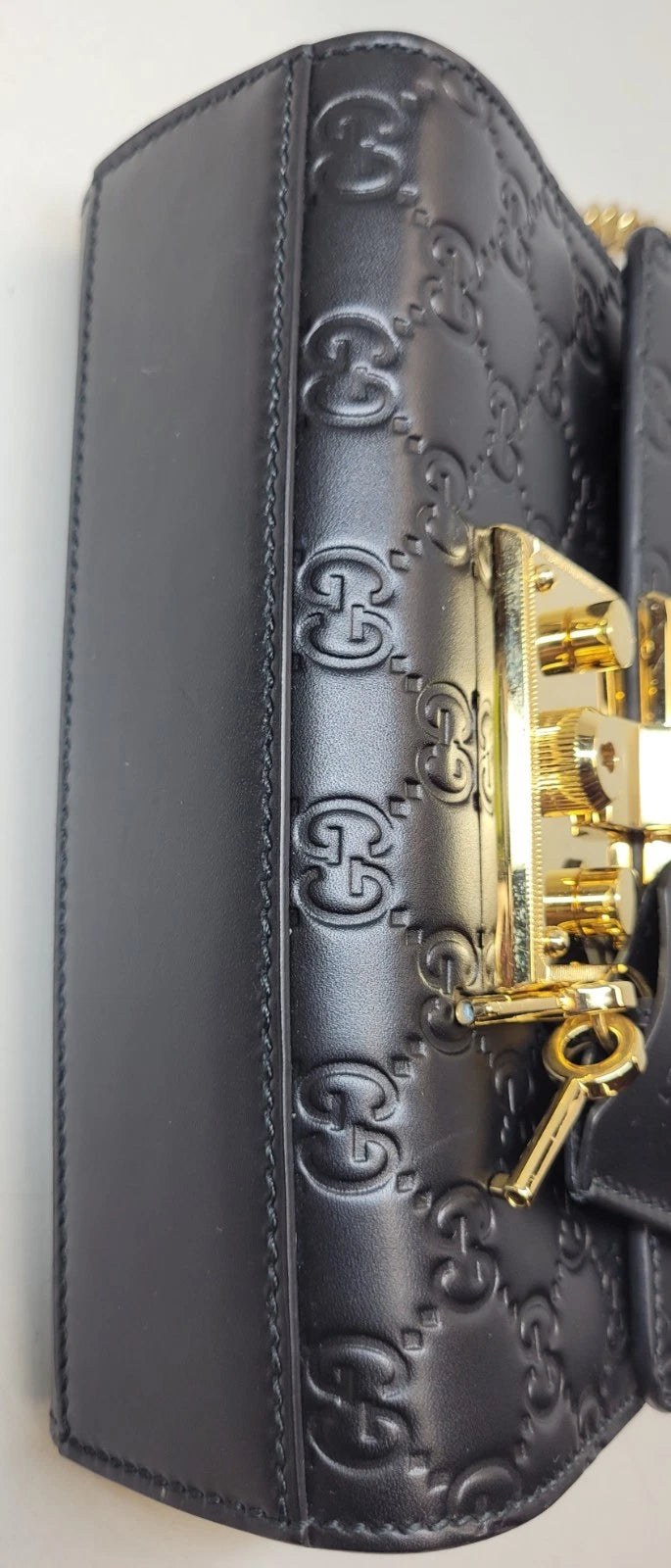 Gucci Guccissima Black Leather Padlock Shoulder Bag w/Box