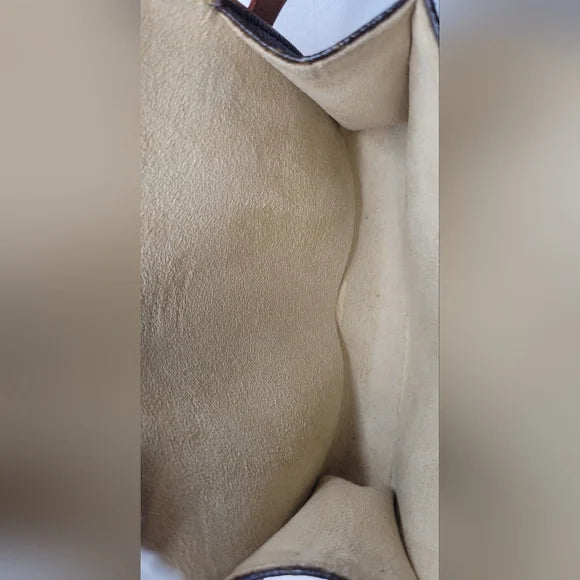 This pochette is in beautiful preloved condition. The exterior is brown monogram with belt bag loops and the original strap. The interior is tan suede with date code. Please see all photos. Join my live show for more info. All sales final.