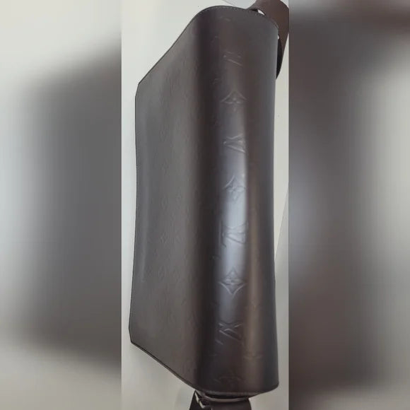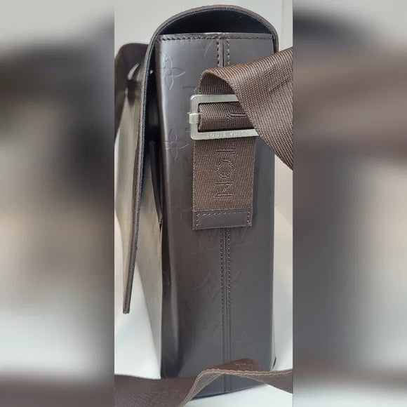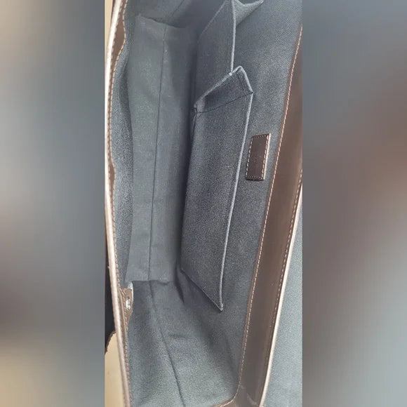 This messenger bag is in excellent condition. It has a gorgeous brown monogram leather exterior with crossbody padded strap for versatility. The interior is black canvas with multiple pockets for storage. Please see all photos. Join my live show for more info. All sales final.
