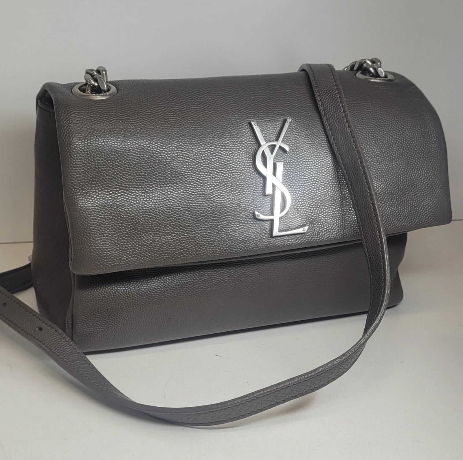 YSL West Hollywood Gray Leather Shoulder Bag